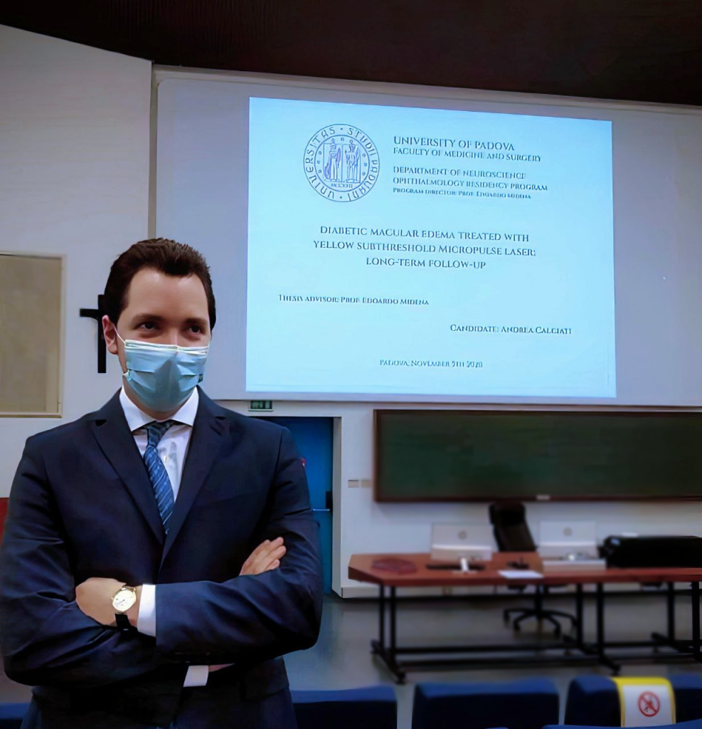 Specializzazione in Oftalmologia (110/110 e lode) presso la Scuola di Specializzazione in Oftalmologia dell’Università degli Studi di Padova (Direttore: Prof. Edoardo Midena).